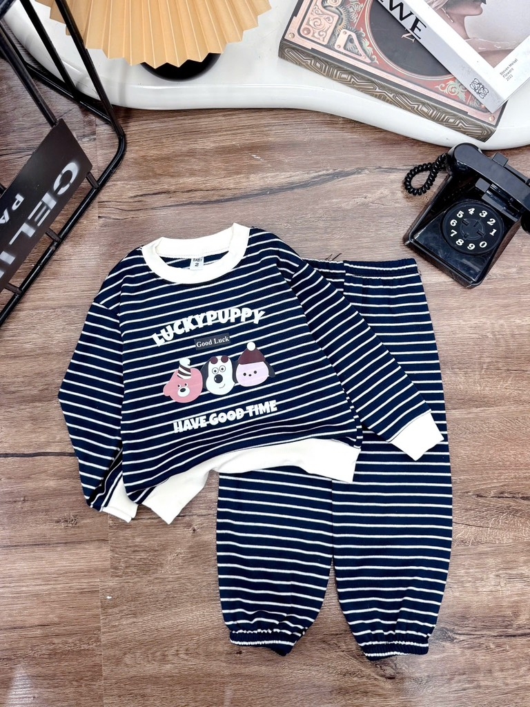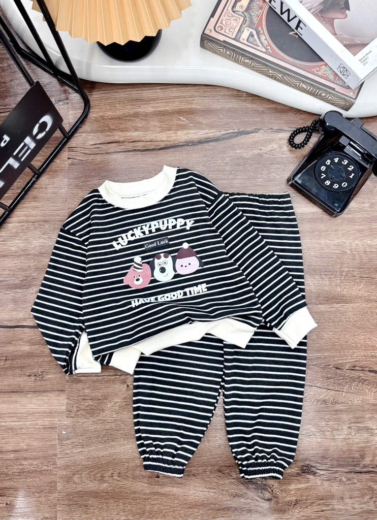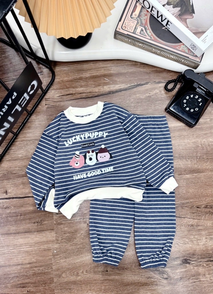 T475-Bộ zip dài kẻ cún Puppy (08.16.251)