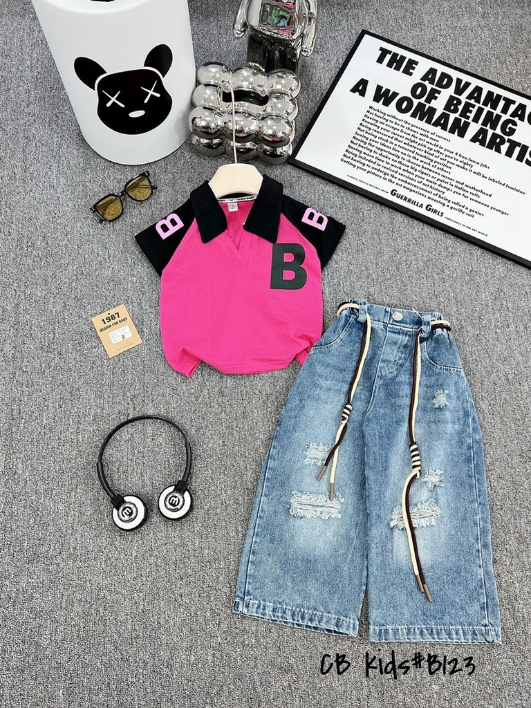 G082-Set áo polo B quần jean xuông