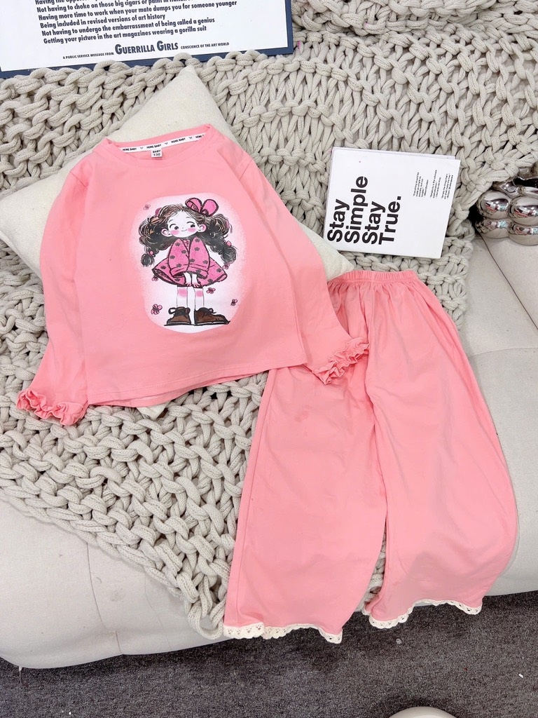 G605-Bộ dài cotton Bé gái ren (18.28.573)