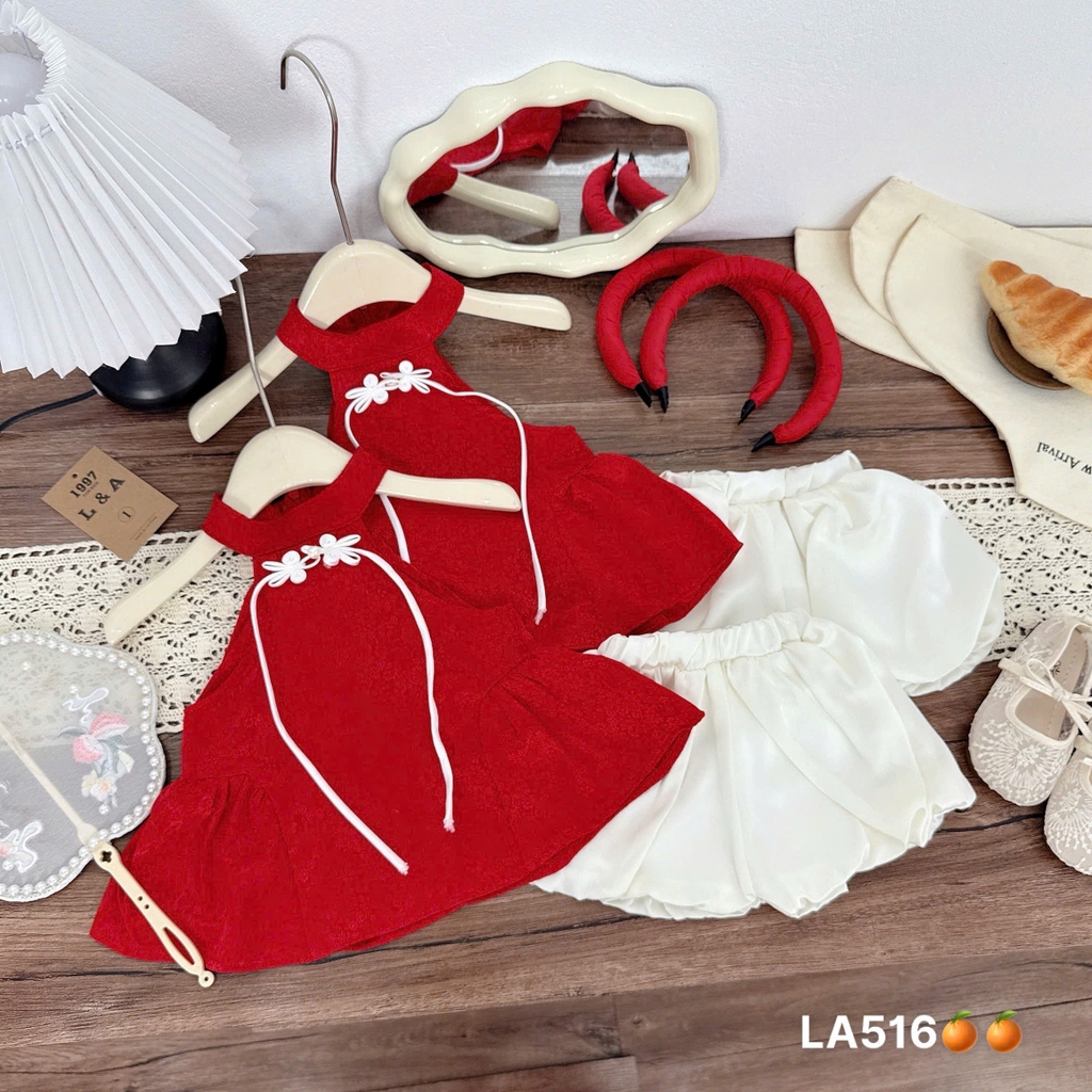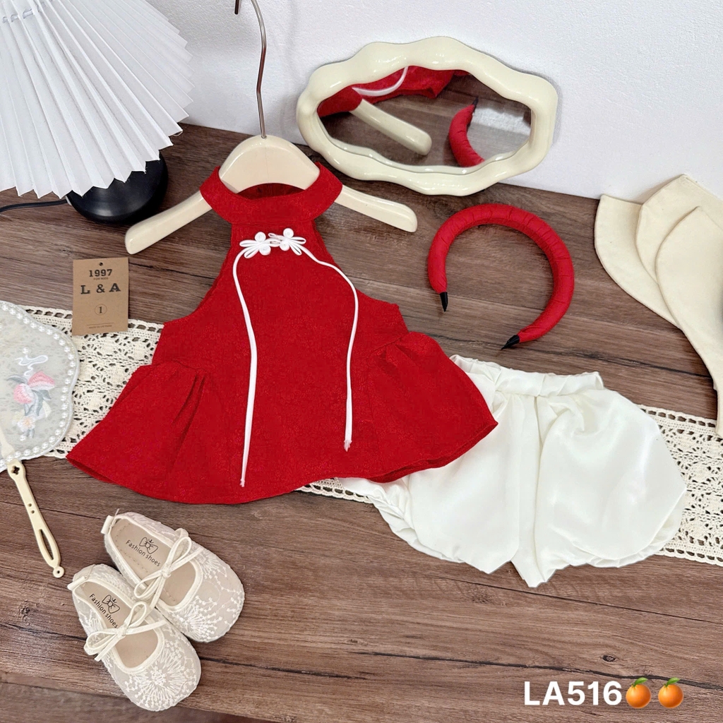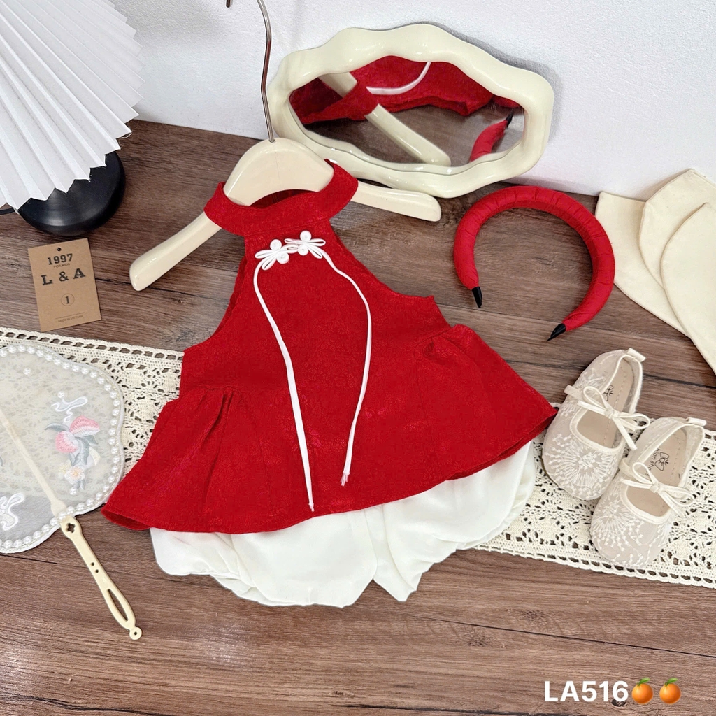 G758-Set áo cổ yếm q bí đỏ kèm cài (08.28kg)