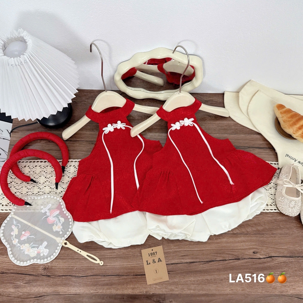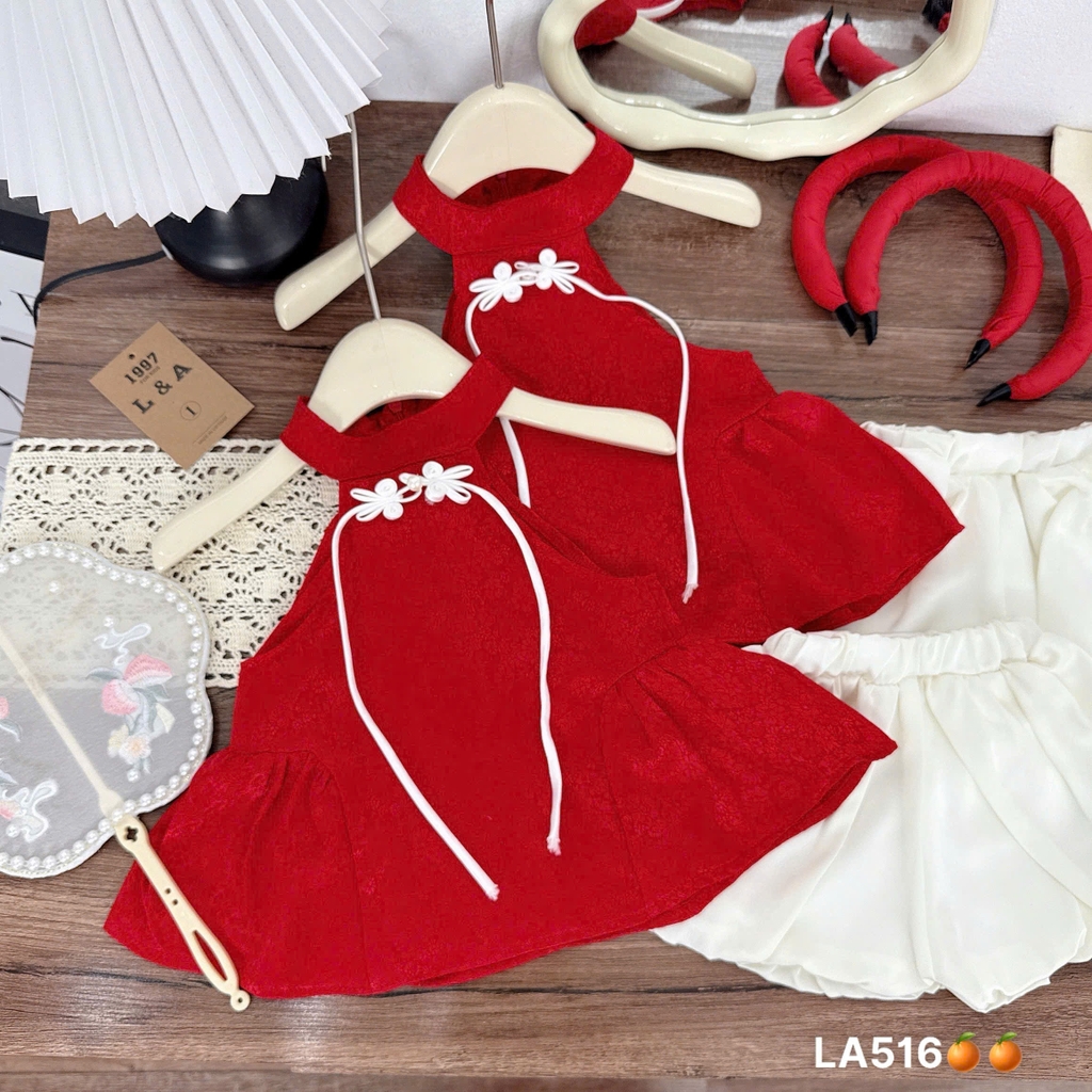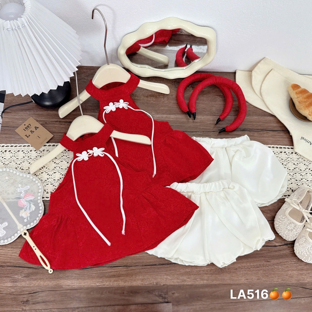 G758-Set áo cổ yếm q bí đỏ kèm cài (08.28kg)