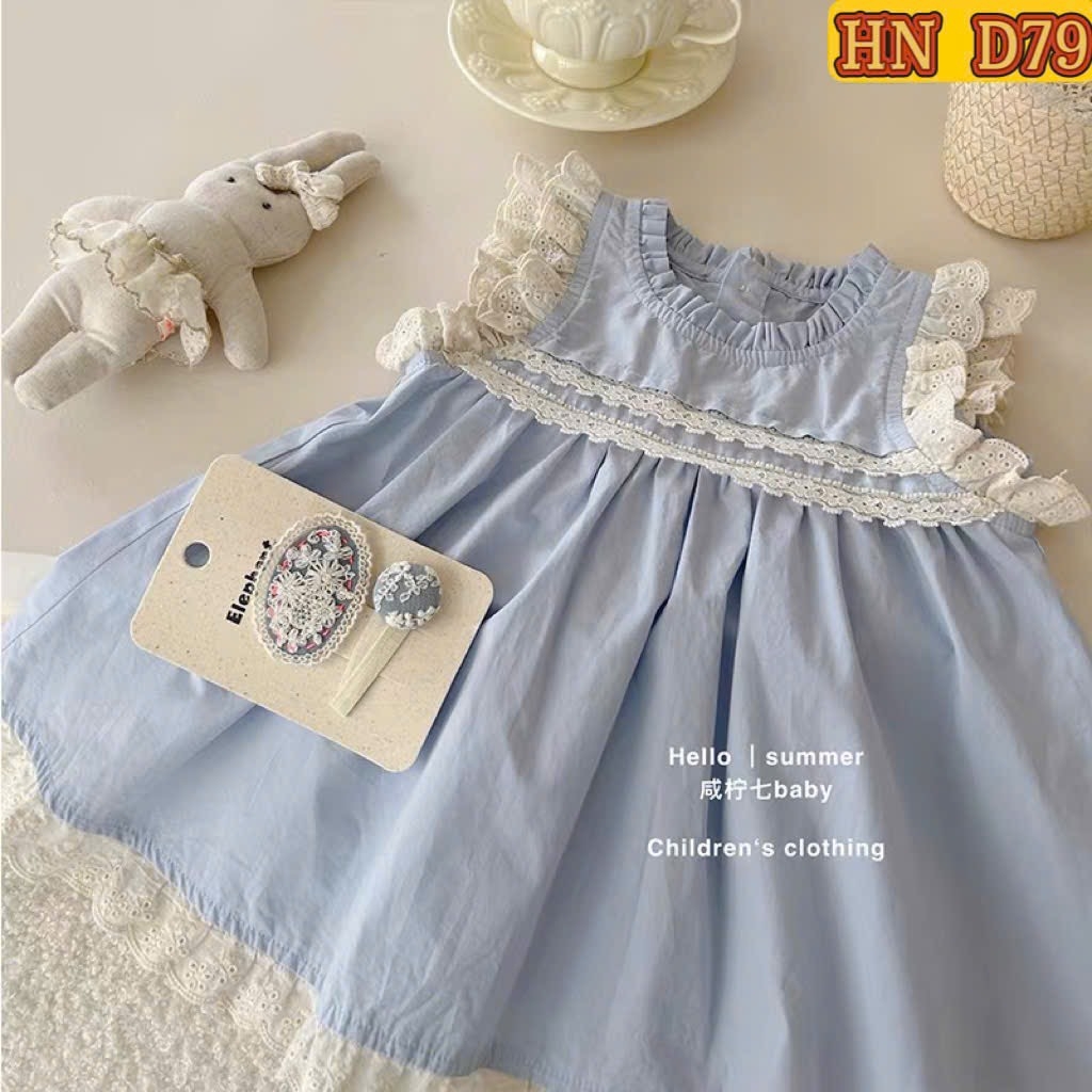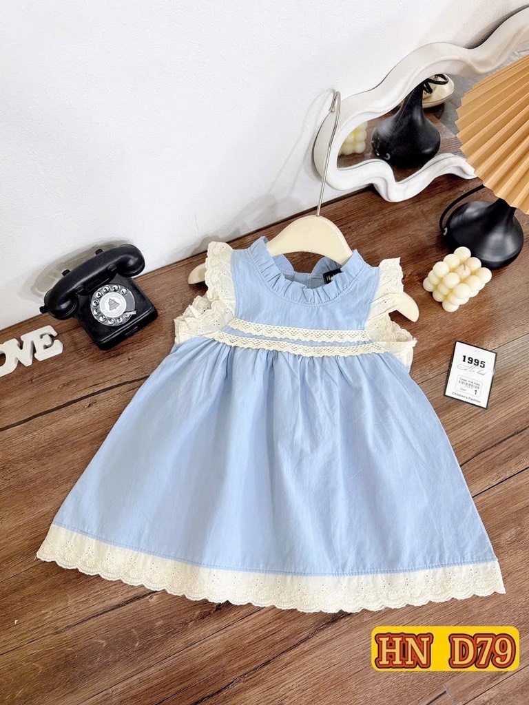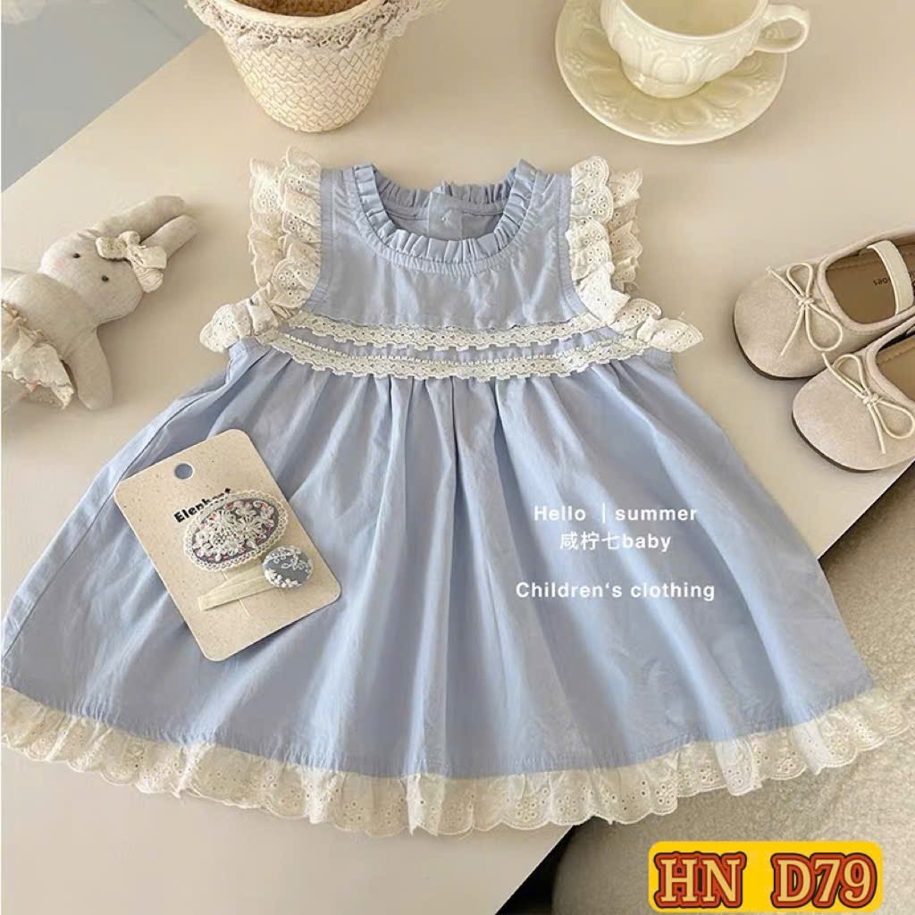 V264-Váy xanh trơn chạy ren (10.26.372)