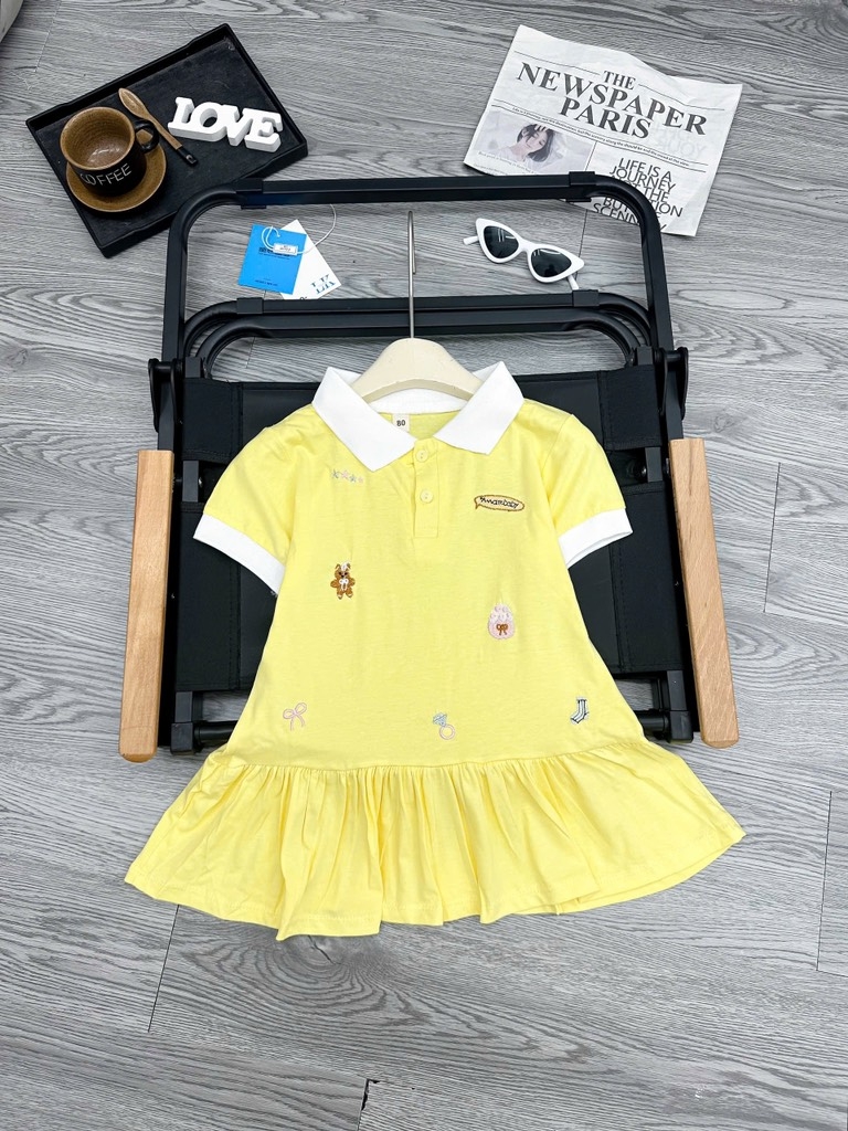 V268-Váy cotton thêu gấu vàng (12.25.661)